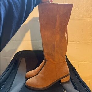 Elevate your wardrobe with these chic tan over the knee suede boots. Perfect for adding a touch of elegance to any outfit.