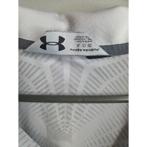 Conquer your fitness goals with this Under Armour men's long sleeve quarter-zip pullover. Designed for performance and comfort, this shirt features a sleek gray hue and the iconic Under Armour logo. The quarter-zip neckline allows for adjustable ventilation, while the long sleeves provide coverage and warmth. Mesh detailing on the sides adds a stylish touch and enhances breathability, keeping you cool during intense workouts. Perfect for the gym, running, or outdoor training sessions.