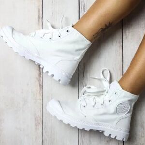 Palladium White Chunky Lug Sole Y2K High Top Vegan Combat Boots Sneakers Shoes