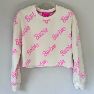 Barbie x Forever 21 Logo Ivory and Pink Cropped Sweatshirt- Size L