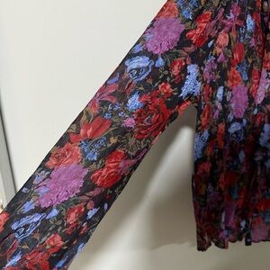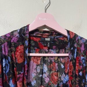 Paige Elynne Silk Floral Tie Neck Blouse Button Front Long Sleeve Size XL