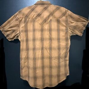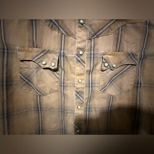 🛷Wrangler Retro Tan Darker Brown Western Plaid Snap Shirt