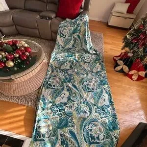 The Pier 1 Imports Vibrant Paisley Queen Duvet and King Pillow Shams (2) Set is a luxurious and traditional option for your bedroom decor. Made of polyester, this three-piece set includes a duvet cover and pillow shams featuring a beautiful paisley pattern in teal and gold. Easy to care for with machine wash and tumble dry instructions, this set offers style and comfort for a restful night's sleep.