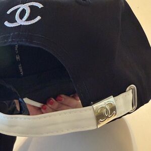 CHANEL Black Cap with White Logo