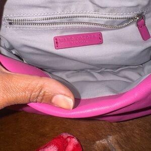 Stylish fuchsia crossbody bag by Marc Jacobs. Features a bold chain strap. Perfect for adding a pop of color.