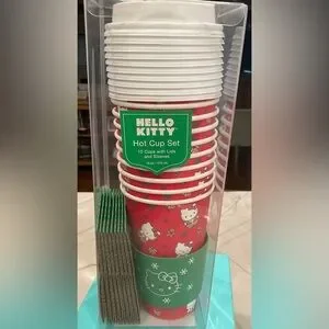 Hello Kitty Hot Xmas Cup Set with Lids NWT