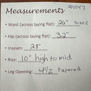2 back pockets, faux front pockets, belt loops