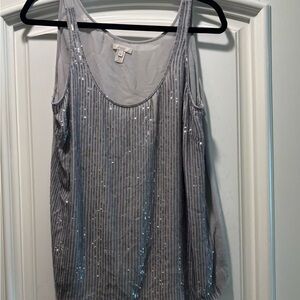 Elegant gray tank with shimmering sequins. Ideal for evening wear.