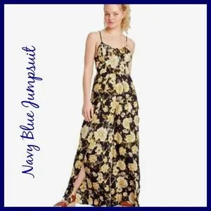 NWT Navy Blue Jumpsuit with Yellow-Gold Floral print.