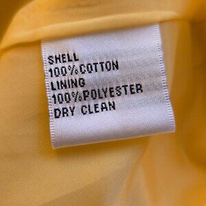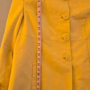 This Talbots Women's Petites Size 12 Swing Jacket Blazer in vibrant yellow is a mid-length swing trench jacket with long sleeves and a button closure. Made off 100% Cotton with a polyester lining, it is perfect for travel, casual wear, or business attire. The bold yellow color and basic jacket style make it a versatile piece for the seasons of summer, fall, and spring. See pictures for beautiful details and measurements.