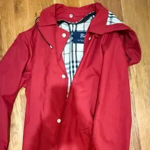 Women's Long Burberry Rain Coat. Red with Burberry Plaid lining. This coat was purchased in London about 20 years ago but has not been worn too much over the years and is still in wonderful condition. Unfortunately, there is no tag that shows the size. I would guess it is equivalent to a US Women's Size 6/8.