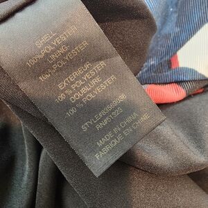 Size 8 Cynthia Steffe Elodie floral print dress features a v-neck with zippered back closure for easy on and off. Sleeveless silhouette with stunning blue, red and white floral detail atop a black background.