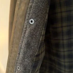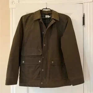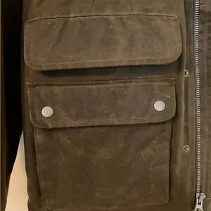 Excellent condition. Waxed finish is in great shape, with light patina associated with waxed cotton. Worn only a few times. Very similar to Barbour in style and quality. Website photo is not the same color — the photos I took show it fairly accurately as more of a dark olive greenish brown.
