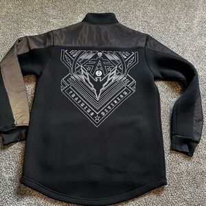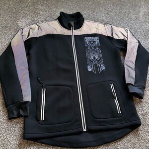Reflective graphic mock neck zip up jacket (reflective material under mesh)