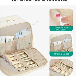 : Travel cosmetic Bag is equipped with puffy handle, two-way zippers, luggage pass-through strap, and provides easy portability and quick access to items