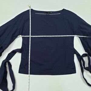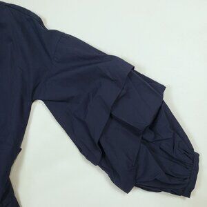 Max Jeans Tiered Balloon Puff Sleeve Blouse Womens XS Navy Cotton Tie-Back Top