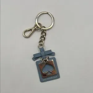 Elegant keychain with blue bow and gold spade charm. Perfect accessory for any bag.