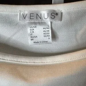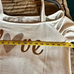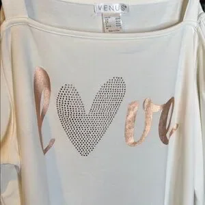 Venus White “Love” Cold-Shoulder Top with Metallic Heart (Size Large)