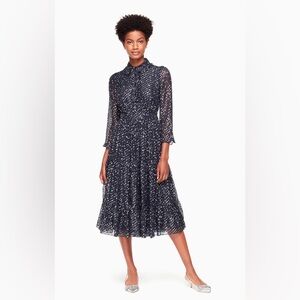 PRICE DROP! Kate Spade New York Night Navy Blue & Silver Sky Dot Midi Dress