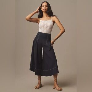 NWT Anthropologie Linen Extended-Waist Pants Navy, Size 14