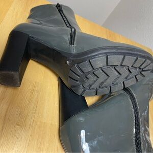 Show stopping shiny grey patent leather with soft genuine leather interior. High quality designer boots. 3inch heel. Excellent condition. Now flaws.