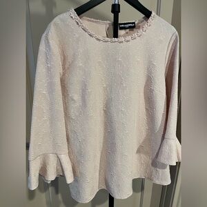 Karl Lagerfeld Paris Jacquard Blush Pink Flare Sleeve Blouse