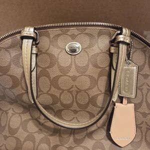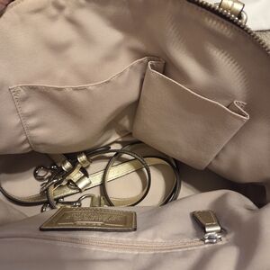 Coach purse, never used with tag, brown with gold handles, with extra long handle, pockets inside purse