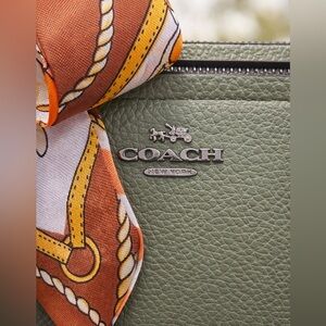 Elegant green satchel Coach Pebbled Leather Small Satchel in a beautiful olive green. Style 34340. Made from soft, durable pebbled leather with a structured silhouette and silver hardware. Comes with both top handles and a detachable crossbody strap for versatile wear.