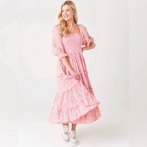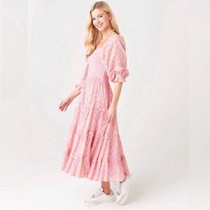 The Loveshack Fancy Women's Capri Midi Dress is a repeat-worthy midi with a smocked bodice and blooming floral details.