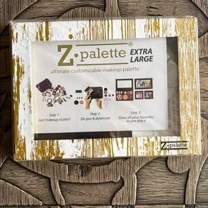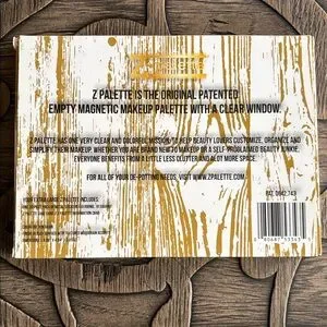 Extra large Z Palette in a golden grain design. Perfect for organizing makeup. It’s an empty magnetic makeup palette with a clear window that lets you customize your own makeup palette. It’s brand new and still wrapped in packaging, so it’s the perfect gift for a makeup lover!