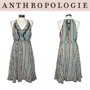 ANTHROPOLOGIE GIRLS FROM SAVOY GULL WING STRIPED SLEEVELESS SILK DRESS
