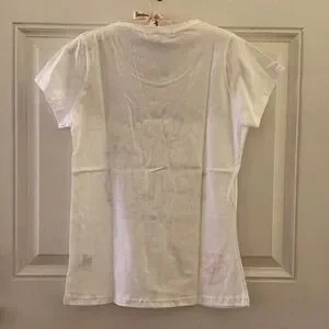 This t-shirt is new and has never been worn, from a smoke-free home! The hanger is for display purposes only and is not included. The top will be folded carefully and wrapped in tissue paper for shipping.