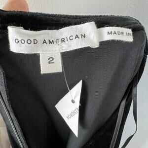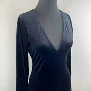 Good American Black Velvet Plunge V-Neck Long Sleeve Bodycon Midi Dress Sz 2 NEW