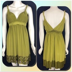 New without tags. An Anthropologie Brand. In true Hale bob’s sexy style. Plunging neck line and fitted empire waist dress. Arm straps are flexible and adjustable to your style. You can twist the fabric and make it narrow, or expand the fabric to give a modest look. Hemline border is embellished with stones n metals adornments.