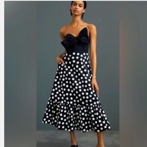 Hutch Anthropologie Black White Polka Dot Bow Midi Cocktail Dress Nwt 0