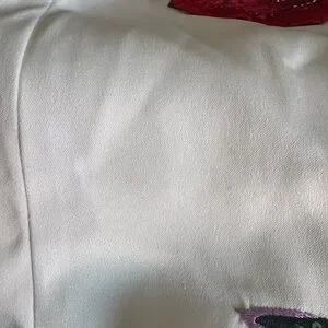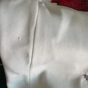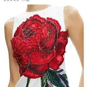 Chic mini dress with striking red floral embroidery. Perfect for standout style. It has a small thread pulled out, but it's not very noticeable. perfect for parties
