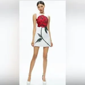 Alice + Olivia by Stacey Bendet White Mini Dress with Red Floral Design