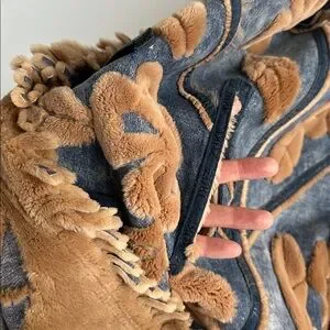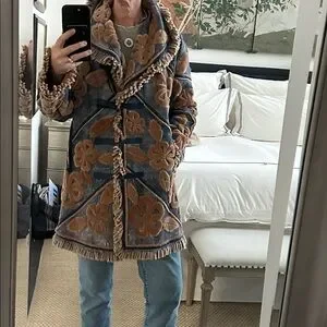 Fabulous vintage coat. 2-button closure, with additional velcro closures on the inside to use on when worn reversible.