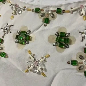 • Color: White with green & metallic floral embellishments