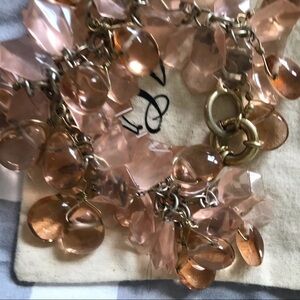 J crew chain bracelet with multiple pink beads. Both faceted and smooth beads. Clasp closure and approximately 7” in length.