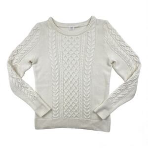 GAP Sweater Womens Cream Cable Knit Crew Neck Fishermans Chunky Preppy Medium
