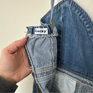 Bohemian Retro 70s Lucky Overall Tie Top Blue Raw Hem Denim Sleeveless Jumpsuit