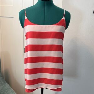 Chic camisole with bold coral and white stripes. Perfect for casual wear.