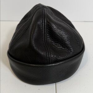 NEW YORK HAT CO SIX PANEL LEATHER SKULL CAP BEANIE HAT BLACK SIZE LARGE.