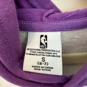 Kids LA Lakers long sleeve hoodie in size Small (6–7). Features team logo on the front, long sleeves, and a comfortable hooded design. Perfect for game days, school, or casual wear. One small imperfection — see photos for details. Pre-owned.