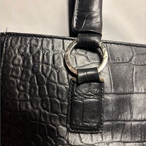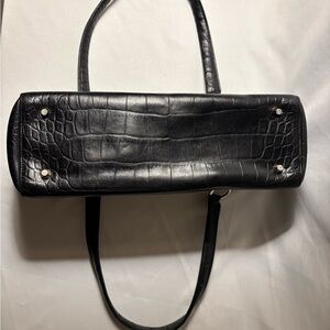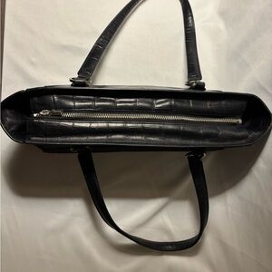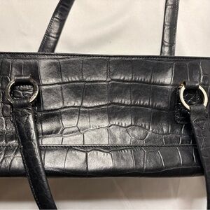 This stylish black tote features a sophisticated crocodile-embossed design. Perfect for any occasion, it combines elegance with functionality.