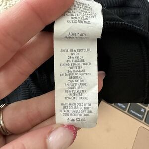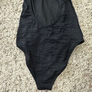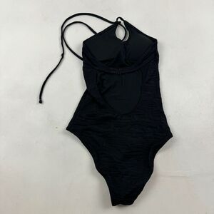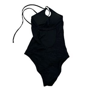 Elevate your swimwear game with this stylish Aerie Real Good One Piece swimsuit. The textured/ribbed pattern adds a touch of uniqueness to the classic black color and the halter tie neck strap provides a comfortable fit. The swimsuit features a shelf bra and is made with stretchy material that ensures a flattering fit. Perfect for beach vacations or pool parties, this swimsuit offers full coverage and is designed for women in size 2XS. It is recommended to hand wash only for optimal care. The theme of this swimsuit is centered around beach, vacation, pool, and swimwear. Don't miss out on this must-have item for your summer wardrobe.