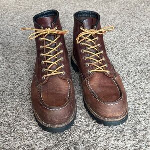 Men’s Rugged six inch Roughneck” style Red Wing leather boots. Briar Oil Slick brown color. Size 10D , real leather, sturdy construction. Features a more substantial vibram non-slip sole, durable laces and comfortable fit. My husband wore them a bit, but ultimately decided they were too snug. Excellent condition.