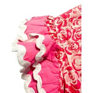 Color/Pattern: Pink and white rose floral print with ric-rac trim