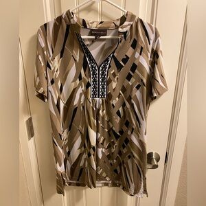 Dana Buchman L Blouse Large Beaded Short Sleeve Top Shirt Lg Stretch